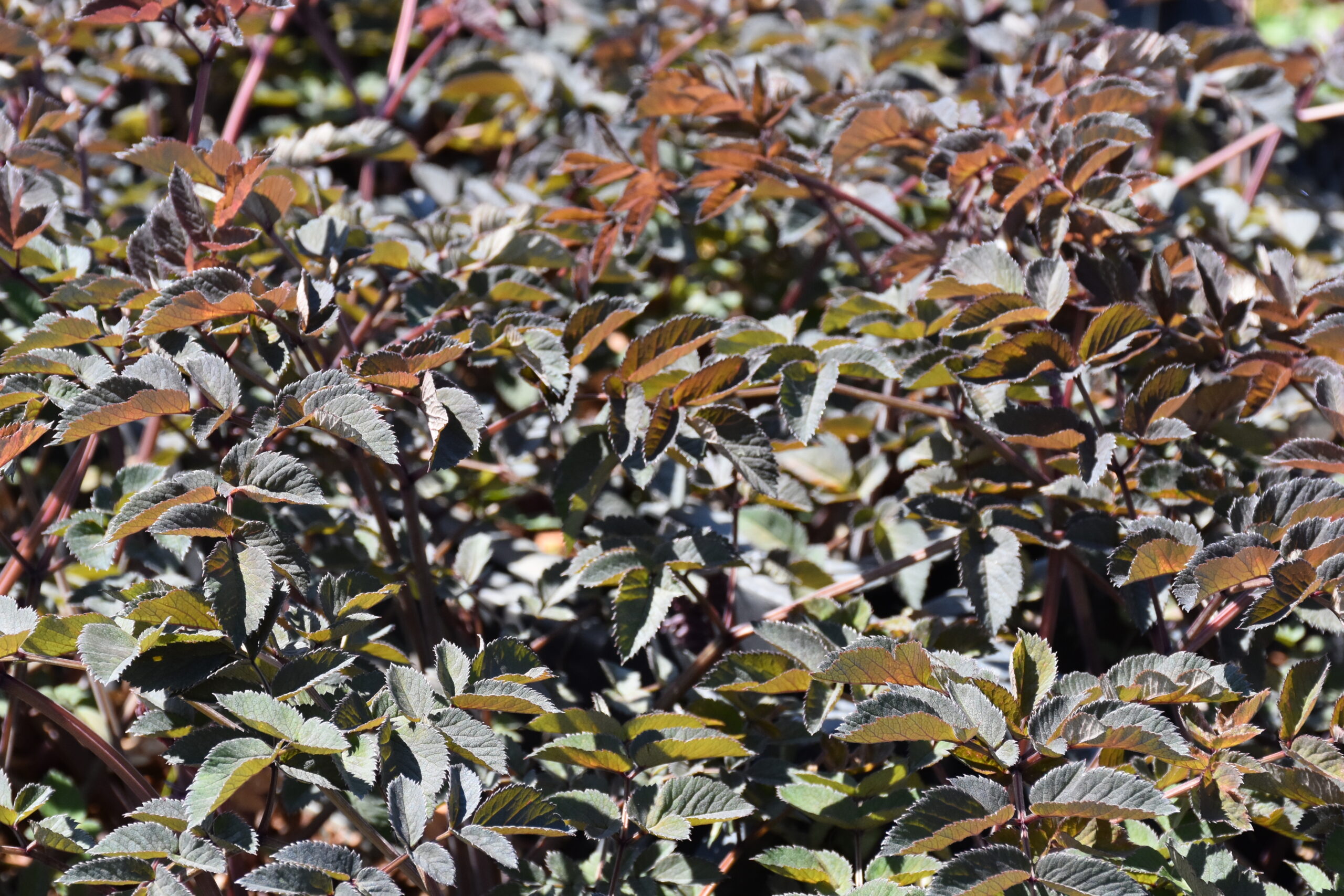 zartrosa, VI-IX, 120 cm, Blatt schwarzrot, sonnig, mittel bis feucht, horstig, Pflanzabstand 100 cm