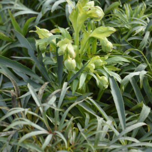Nießwurz, grünlich-gelb, III-IV, 50 cm, Blatt grün, halbschattig bis sonnig, trocken, versamend; horstig, Pflanzabstand 45 cmC 1|ab € __,__IIIIIIIVVVIVIIVIIIIXXXIXIIHelleborus foetidus 'Wilgenbroek'